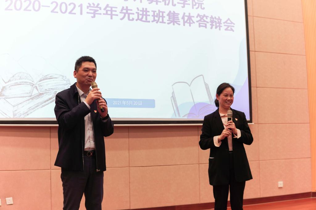 活动伊始,10个候选班级的答辩代表依次上台进行汇报展示。各班立足本班特色,从班级制度、思想引领、学习成效和实践创新等多个方面进行了汇报,回答评委提出的问题,展现了班级风采,赢得了在场老师和学生的阵阵掌声。数媒1903班以树莓加工厂比喻班级,形象生动地展示了班级同学团结友爱、互相帮助、共谋进步的面貌,班级还专门成立了各科学习小组,是一个和谐融洽且有上进心的集体。计科1901班39名班级同学有理想有目标,在班委的有力带领下学风端正、思想积极向上,在科创竞赛、社会实践、文体活动中都收获满满。其他班级同样以丰富多样的形式展现了班级生活,讲述成长故事,有效传达了班级文化和精神面貌。