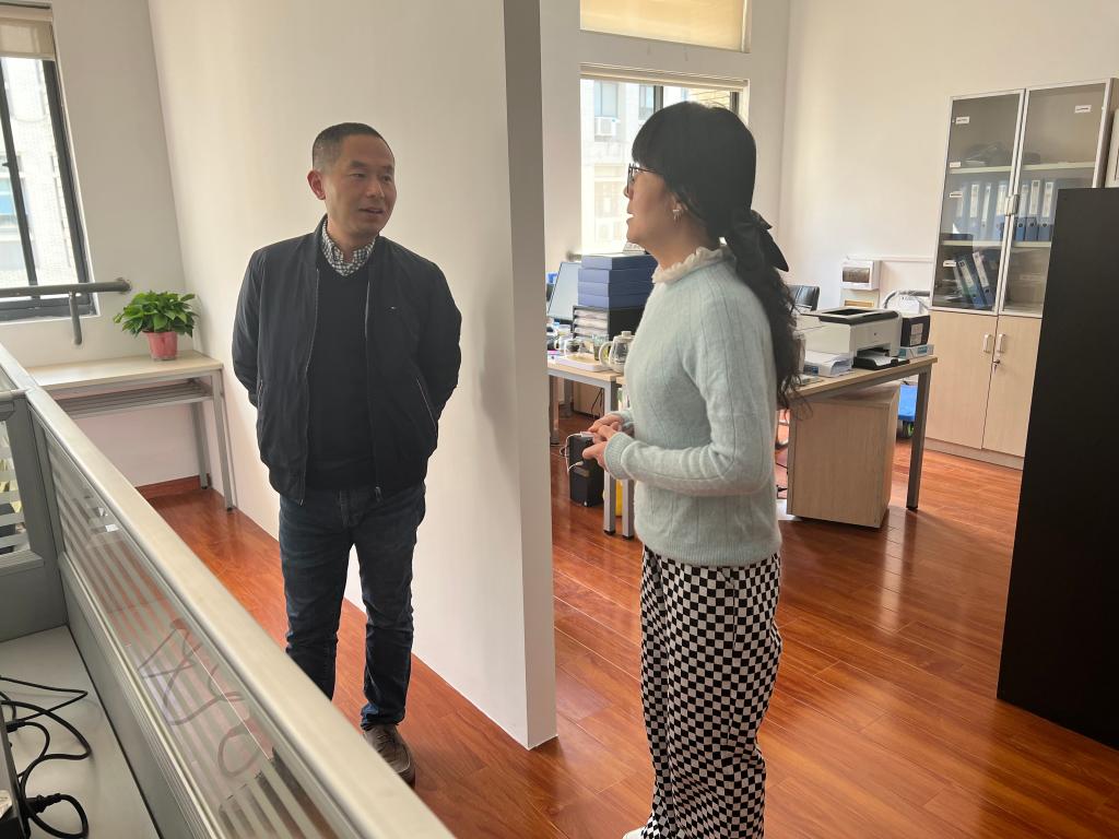 与实验中心主任张晓婷交谈