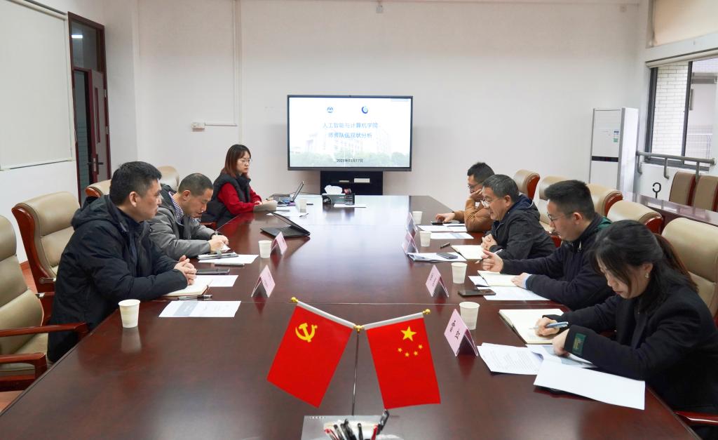 方伟汇报了学院师资队伍现状分析,就学院现有师资队伍分析、与相关高校师资队伍对比分析以及存在的问题及举措探讨进行了深度分析,提出学院在师资队伍数量、国家级人才、教师科研成果等方面存在的问题,提出将主动出击寻觅优秀人才,进一步聚焦学科建设,夯实青年人才培养体系,开拓海外引智或高水平大学引智渠道,破局高层次成熟人才及团队的方法等举措。之后,双方就计算机类人才培养,高层次人才引进举措、教师老龄化问题、生师比问题、多元用工探索、“三无”教授的管理和评价等问题进行了深入探讨。