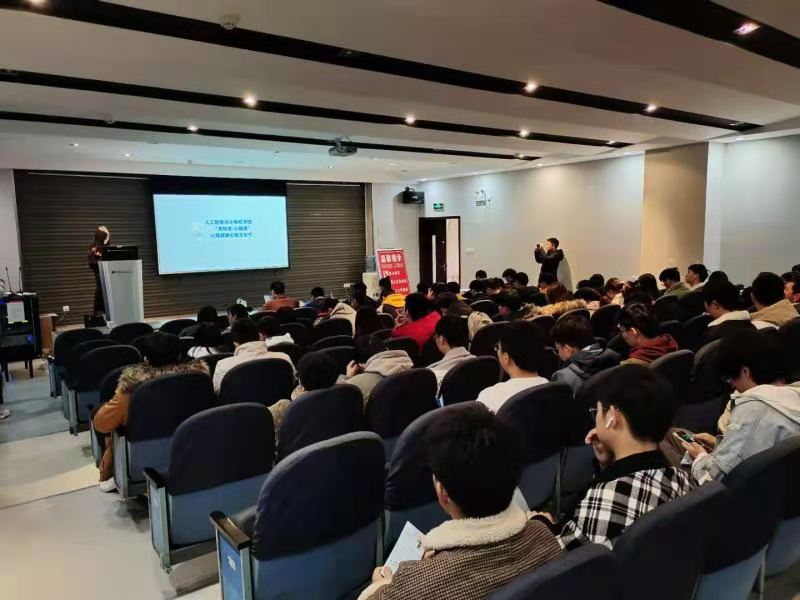 116报告厅内座无虚席,“心影空间”主题电影展播活动即将开始,本次展播的电影是《心灵捕手》,影片吸引了100余名同学前来观看。