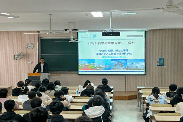 10月7日下午3:30,我院教授、博士生导师李光辉老师在2C203为计算机科学与技术专业2022级学生做专业转型教育。李老师主要从为什么要学计算机、怎样才能学好计算机和国产直播