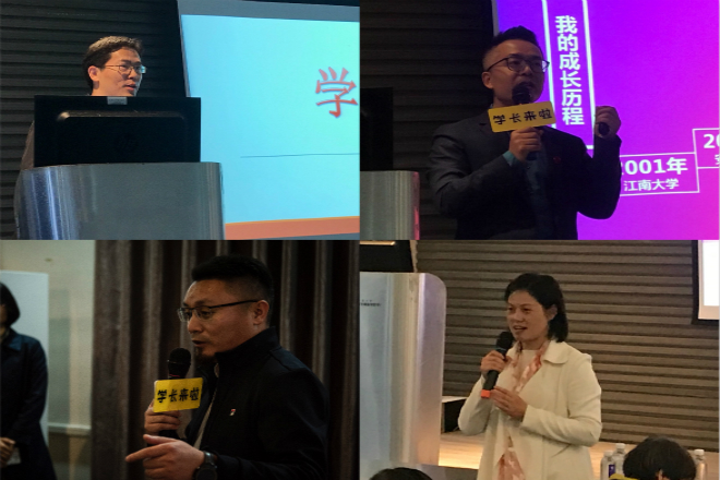 穆瑞骐学长是无锡校友会常务副会长,他结合自身求学、就业及创业的经历,通过具体的事例向同学们阐释了职业规划的三个阶段“能做什么”、“做了什么”和“与谁合作”,强调确立明确目标及生涯规划的重要性。周宇学长2008年从东南大学计算机系硕士毕业后,先后就职于阿里、网易和华为公司。他侧重介绍了互联网行业的基本概况、技术积累和读研深造的重要意义,进而提出个人建议:大学阶段要打牢专业基础;工作前3-5年注重技术积累,找到自己的兴趣点和方向力;工作5年后构筑自身竞争力,在领域内扩展深度和广度。孟永波学长的分享充满激情,他认为专注于事业非常重要,每个人都会有迷茫和困惑的时候,越迷茫越需要有规划,因为相信所以看见。他还表示知识会迭代,但方法只会精进,无论是学习还是工作都要脚踏实地才能把握好每一个关键阶段。