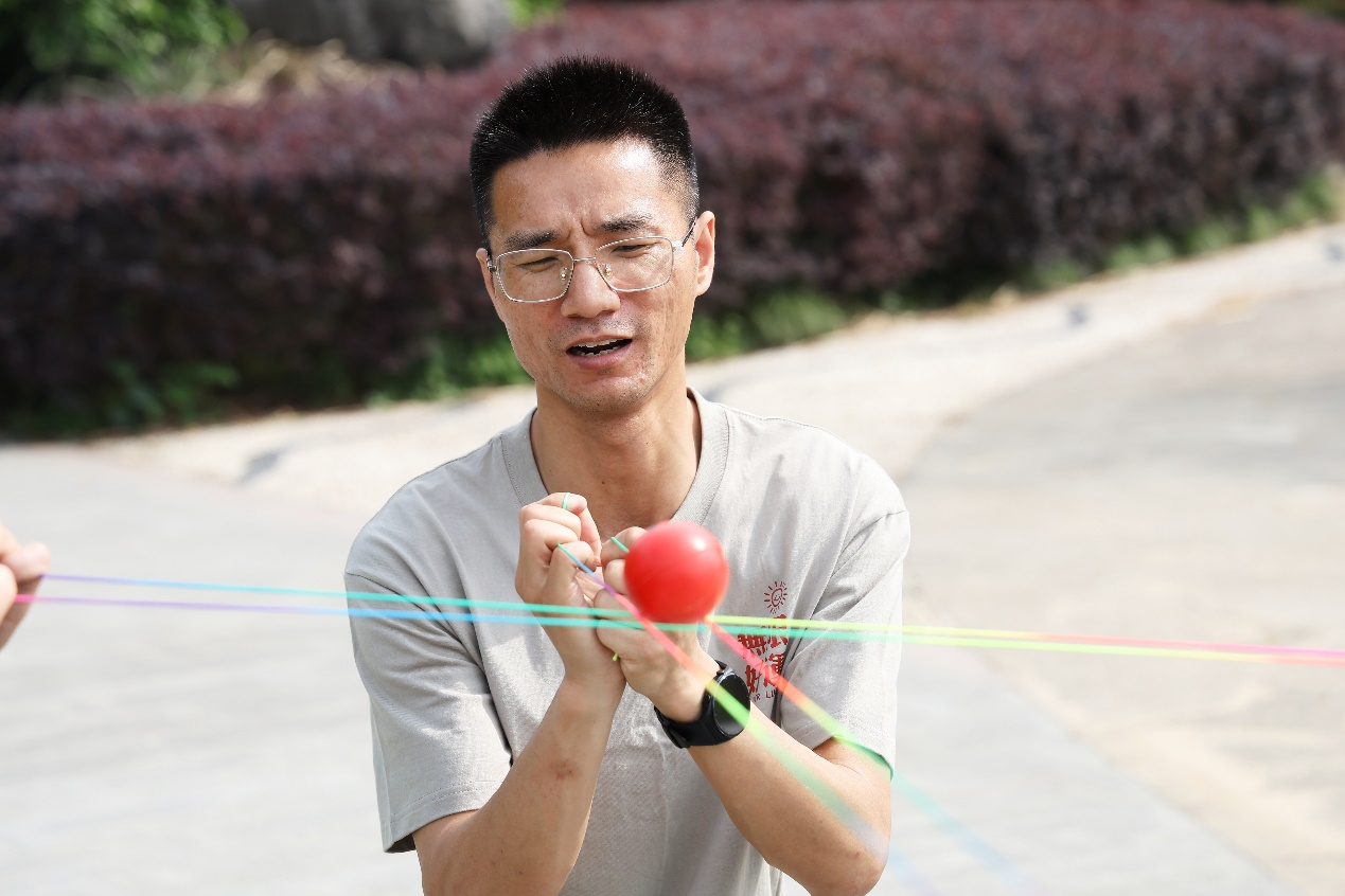 接下来的“纵横天下”环节,老师们分组参加投壶游戏,并利用8根绳子将小球从起点运送到终点。这不仅考验了大家的团队协作能力,更是对彼此默契度的极大考验。绳子在手中舞动,团队在心中凝聚,每一个成功的瞬间都让人欢欣鼓舞。