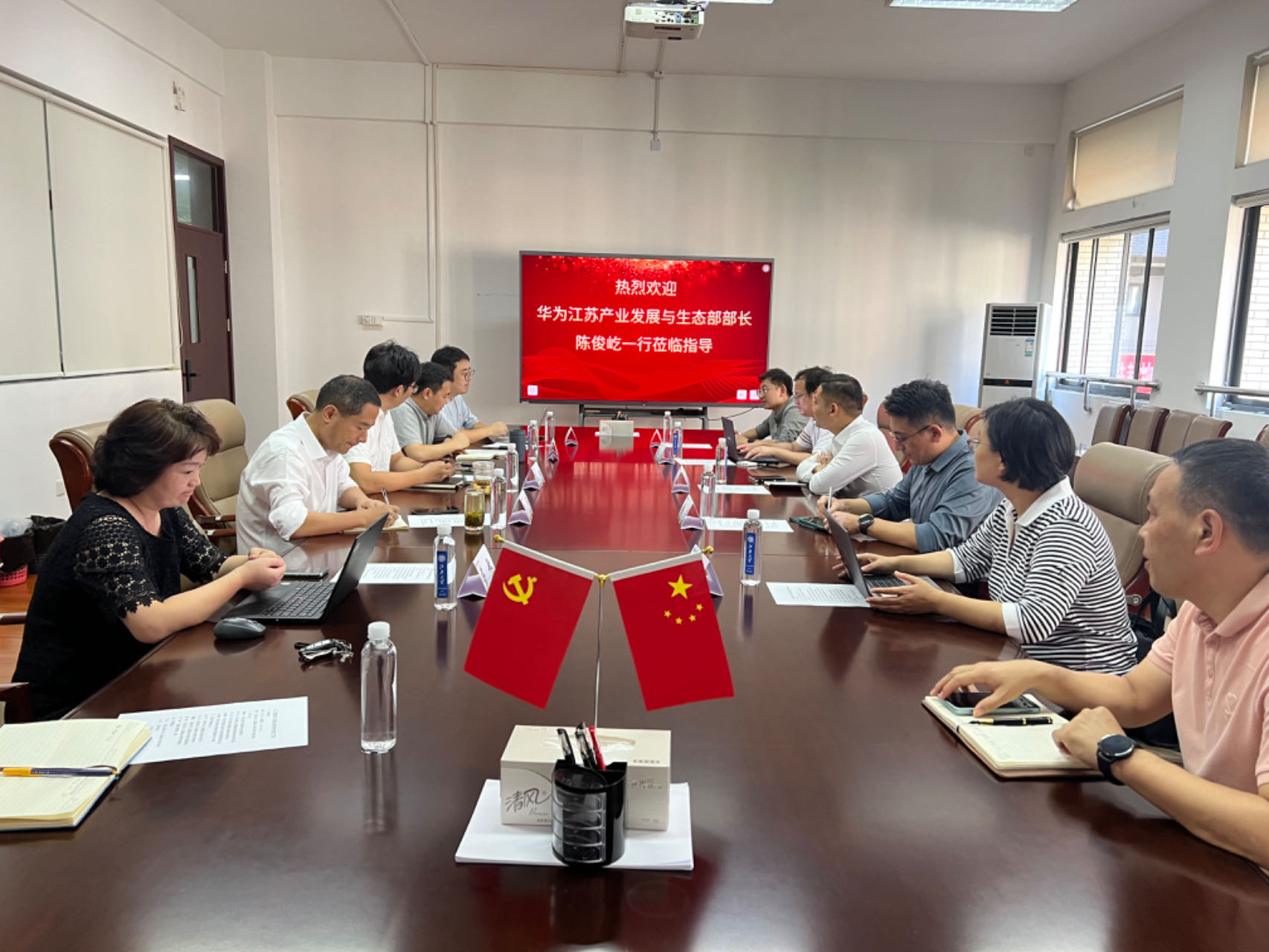 9月13日下午,华为江苏产业发展与生态部部长陈俊屹、华为无锡人工智能协同创新基地运营总经理张茂、华为江苏政企教育行业解决方案总监彭迪、华为江苏政企大客户与地市服务部院校总监孙婷婷、华为江苏政企无锡业务部教育行业代表卢兴典一行来国产直播