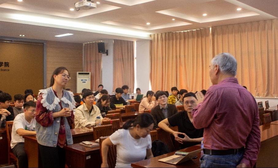 在师生互动问答环节中,现场老师与同学们积极提问发言,于老师耐心地为大家解答,激发了同学们对于计算审美强烈的兴趣以及积极探索的思维,同时也给学院老师提供了新的科研思路。