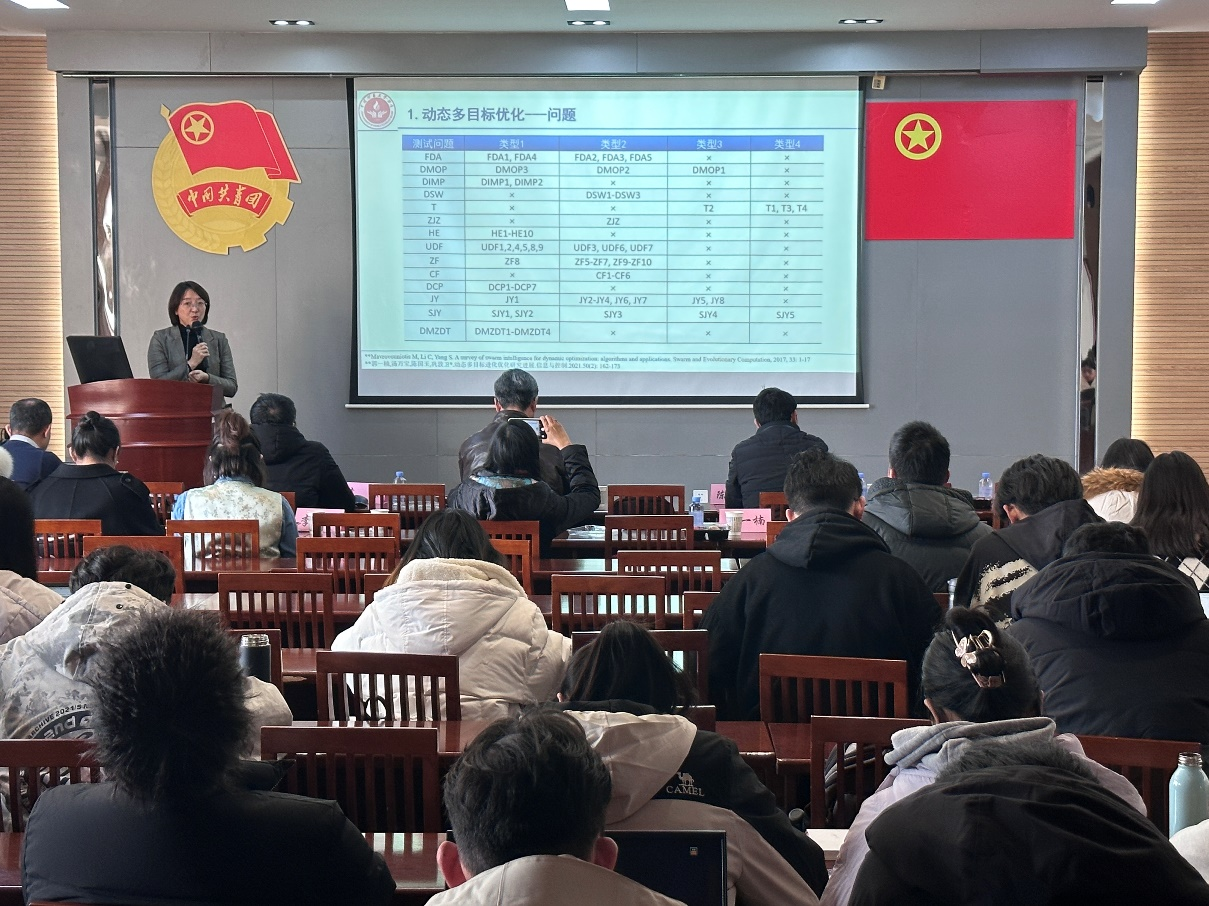 中国矿业大学(北京)教授郭一楠,做了《知识引导的多目标进化优化》的报告,面向进化过程中的隐性知识,报告给出了相应的知识挖掘策略,并提出了相应的自适应知识引导算子;针对动态多目标优化问题中迁移学习机制响应环境变化时效性问题,提出了域适应学习方法,引入子空间分布对齐方法,减少知识迁移过程的计算消耗,有效权衡了算法性能和效率;面向不同动态特性的动态多目标优化问题,历史环境间差异性具有不确定性,提出了知识引导迁移策略,通过知识匹配方法从知识池中挑选适用于当前环境的知识,并利用混合迁移机制提高历史知识的利用效率,基于此拓展其求解群智能感知中的任务分配等问题,提出了基于Q-学习的超启发式多目标动态感知任务分配机制。