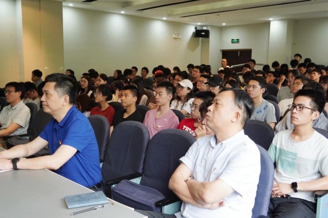 116报告厅为智能学子讲授了一堂思想政治教育课。学院党委委员、专职组织员、辅导员等参加听课。活动由学院党委书记张华主持。