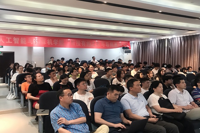 于6月29日下午举行“教授有约之我与导师面对面”活动,学院党委副书记陈祎,计算机系教授柴志雷、蒋敏、毛力、李光辉,数字媒体技术系教授王士同、王映辉、谢振平、邓赵红,2018级辅导员王牧、麦日帕提及部分大二、大三年级学生参加活动。