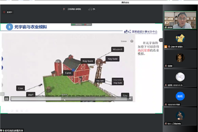童咏昕教授介绍了CCF的概况及“CCF走进高校”系列活动的开展情况。彭绍亮教授围绕“基于超算的元宇宙算力与应用展望”这一主题进行了报告。从元宇宙概念背景、元宇宙算力基础、元宇宙特性要素、元宇宙与农业医疗等多方面展开讲解。超算、云计算和边缘计算等技术为元宇宙提供了算力基础。元宇宙涉及的应用领域包罗万象,未来健康医疗可能简单得就像打开微信一样,随时在线,元宇宙将彻底改变我们求医和健康生活方式。他特别强调,我们要让元宇宙插上想象的翅膀,运用中国人民的聪明才智建立起数字中国,虚实结合的元宇宙中国,构建高质量发展、绿色发展、和平发展的人类命运共同体,进而引领全球元宇宙。