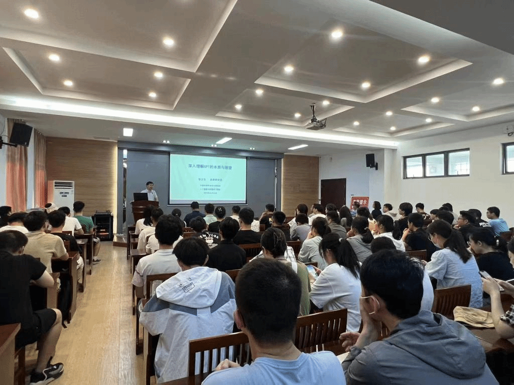 在师生交流互动环节,同学们纷纷提出对于GPT和自然语言处理的疑惑,张教授逐一答疑解惑,进一步分析GPT的相关理论和技术问题,寄语同学们要抓住本质,坚持长期主义,注重科学积累。